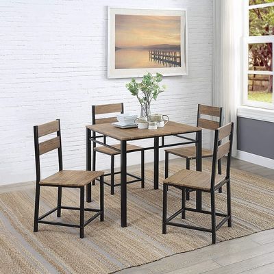 ¿Cortocircuito en espacio? Maximícelo con nuestro sistema de cena de madera 5-Piece, cuyos marcos de acero y capacidad de 265 libras hará cada comida un placer. Un tablero de la mesa el 1.57in grueso durable se acaba con un final brillante del grano de madera realista para la calidad que cena en una superficie lisa. Las jugadas preparadas se diseñan con los materiales de la calidad como la madera del MDF, para un producto robusto y elegante que dure por años. ¡Cada superficie es no sólo durable, él es también fácil de limpiar! Trapos tableros PVC-revestidos, hidrófugos, y mancha-resistentes limpios con un paño húmedo para la limpieza rápida. ¿No entreteniendo esta noche? Resbale las sillas conforme a la mesa de comedor para una pieza central lisa, minimalista. ¡Sea cual sea su necesidad, este sistema de cena está lista para usted!